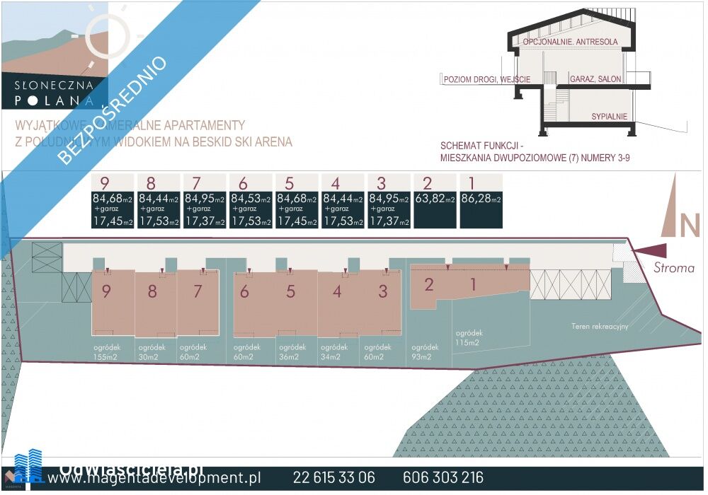 Nowoczesne apartamenty w Szczyrku z widokiem na Skrzyczne i Beskid Sport Arenę – Twój luksus w sercu gór!Dwupoziomowe apartamenty o powierzchni od 63 do 86 m² z tarasami i prywatnymi ogródkami oraz garażami i miejscami postojowymi.